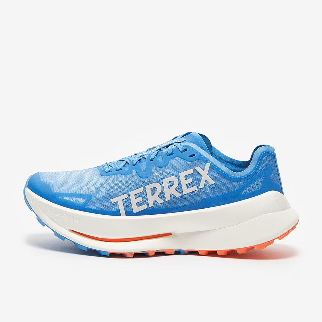 Fast and light, the adidas Terrex Speed Ultra in Pulse Blue/Grey One/Semi Impact Orange is designed for ultra-distance trails, and to provide speed over long distances, off the road.