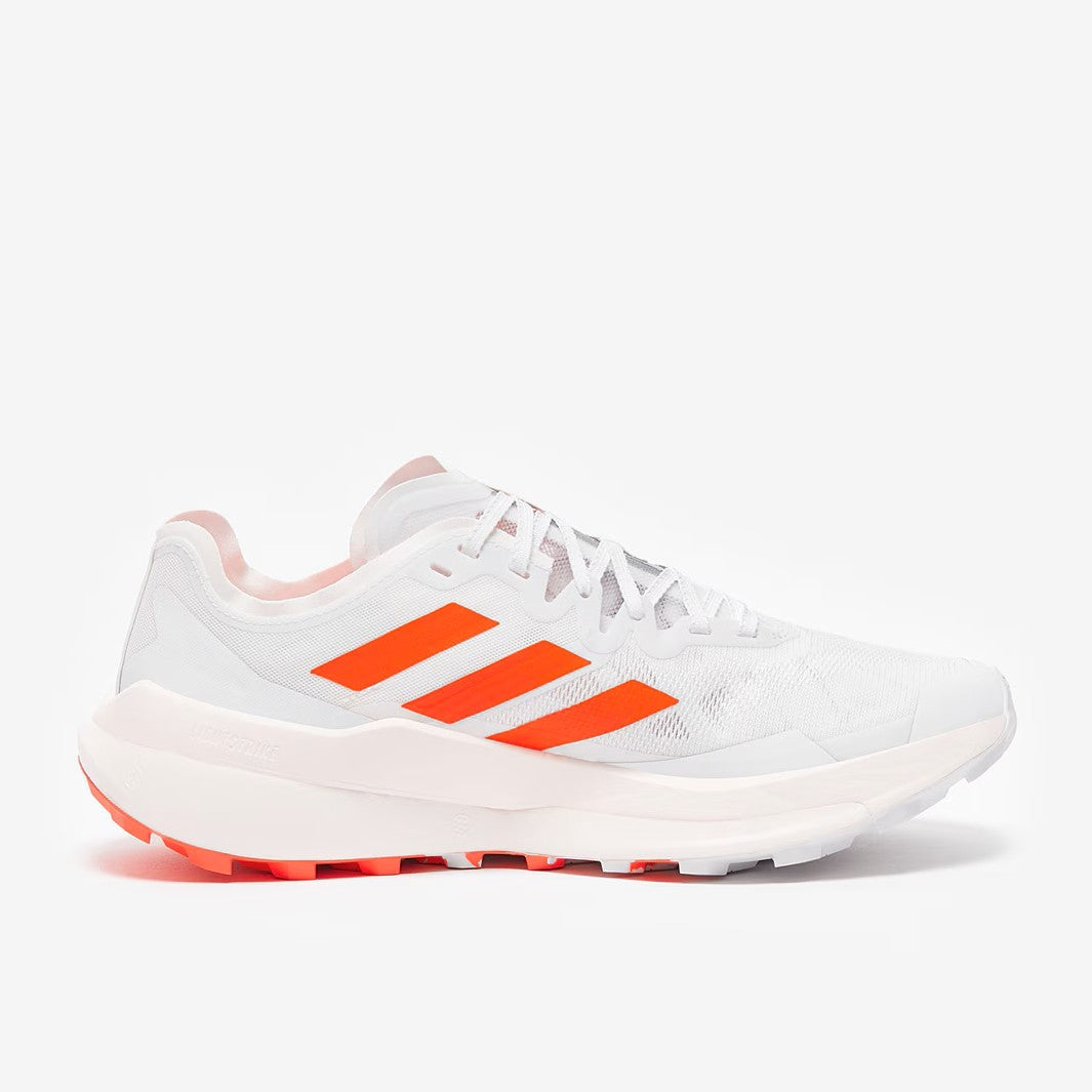 Lightweight and agile, the adidas Women’s Agravic Speed in Ftwr White/Impact Orange/Dash Grey is designed to help you find new levels of speed across the trails, whether you are heading through a mountain pass, or doing a loop of your local park.