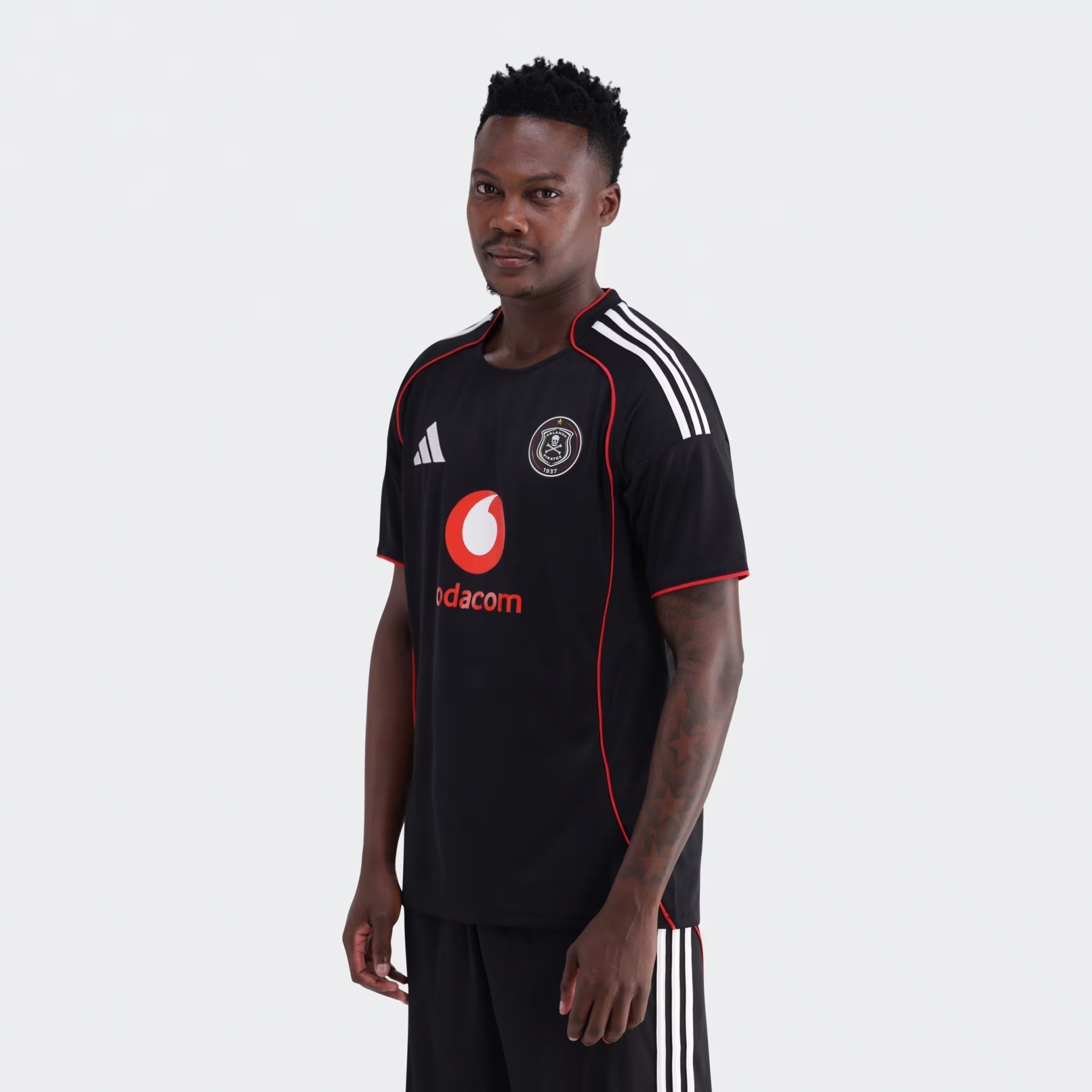 Show your pride in the 25/26 Orlando Pirates Home Jersey — a tribute to the club’s roots and the fearless spirit of its fans. Designed in classic black with striking white bone-like detailing, it channels the energy of matchday and the legacy of generations.