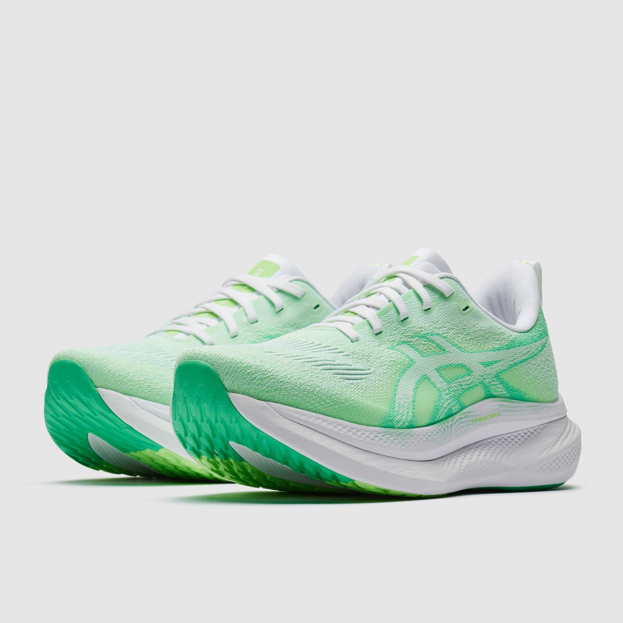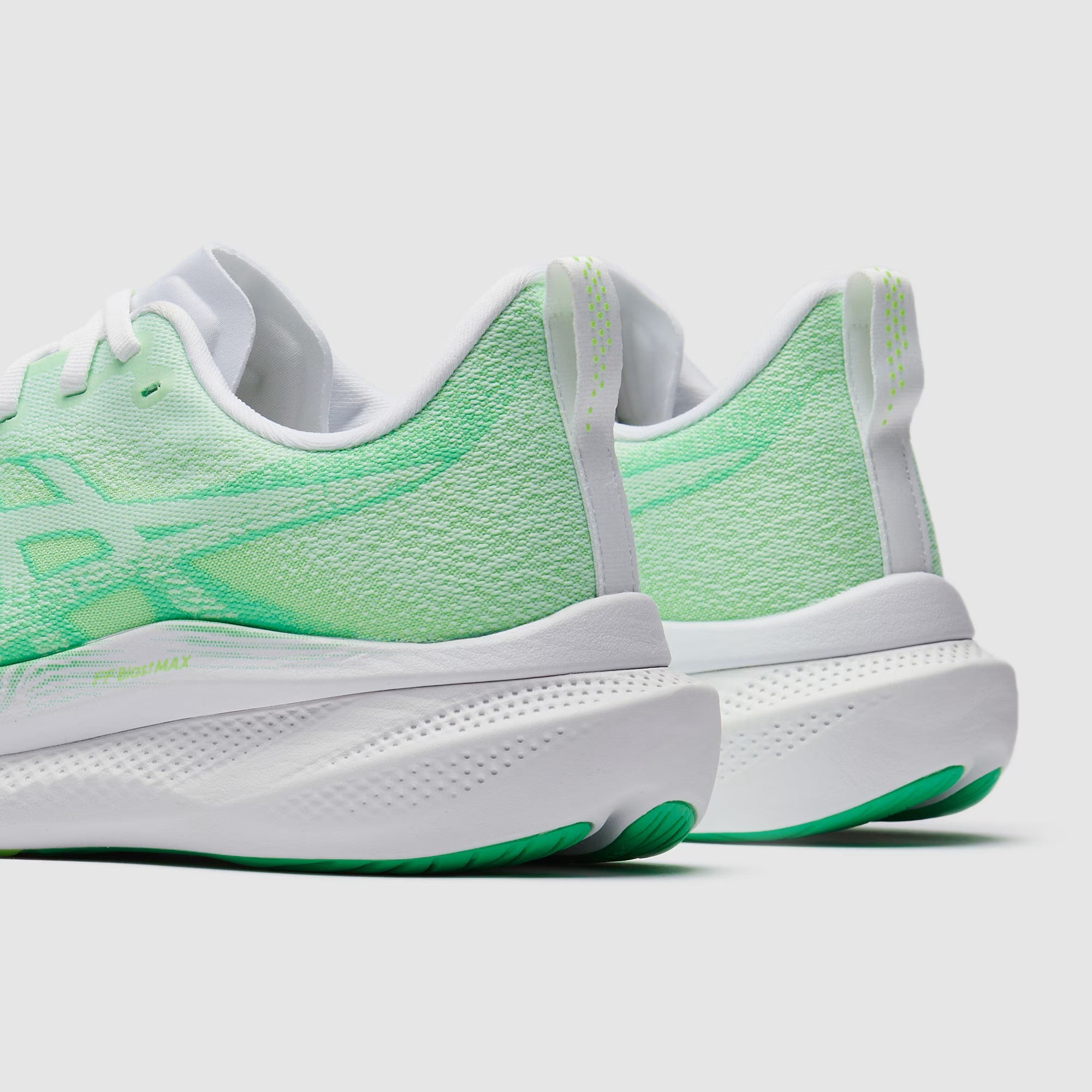 The ASICS Women’s Glideride Max 2 in White/Vital Green features a huge max stack of cushioning to deliver cushioning and comfort with a smooth and balanced ride.