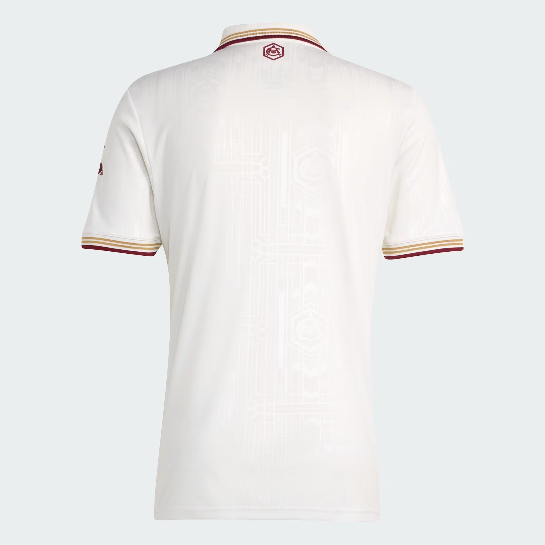 Twenty years on from Arsenal's final season at Highbury, this adidas football jersey nods to the Art Deco elegance of the stadium's East Stand.