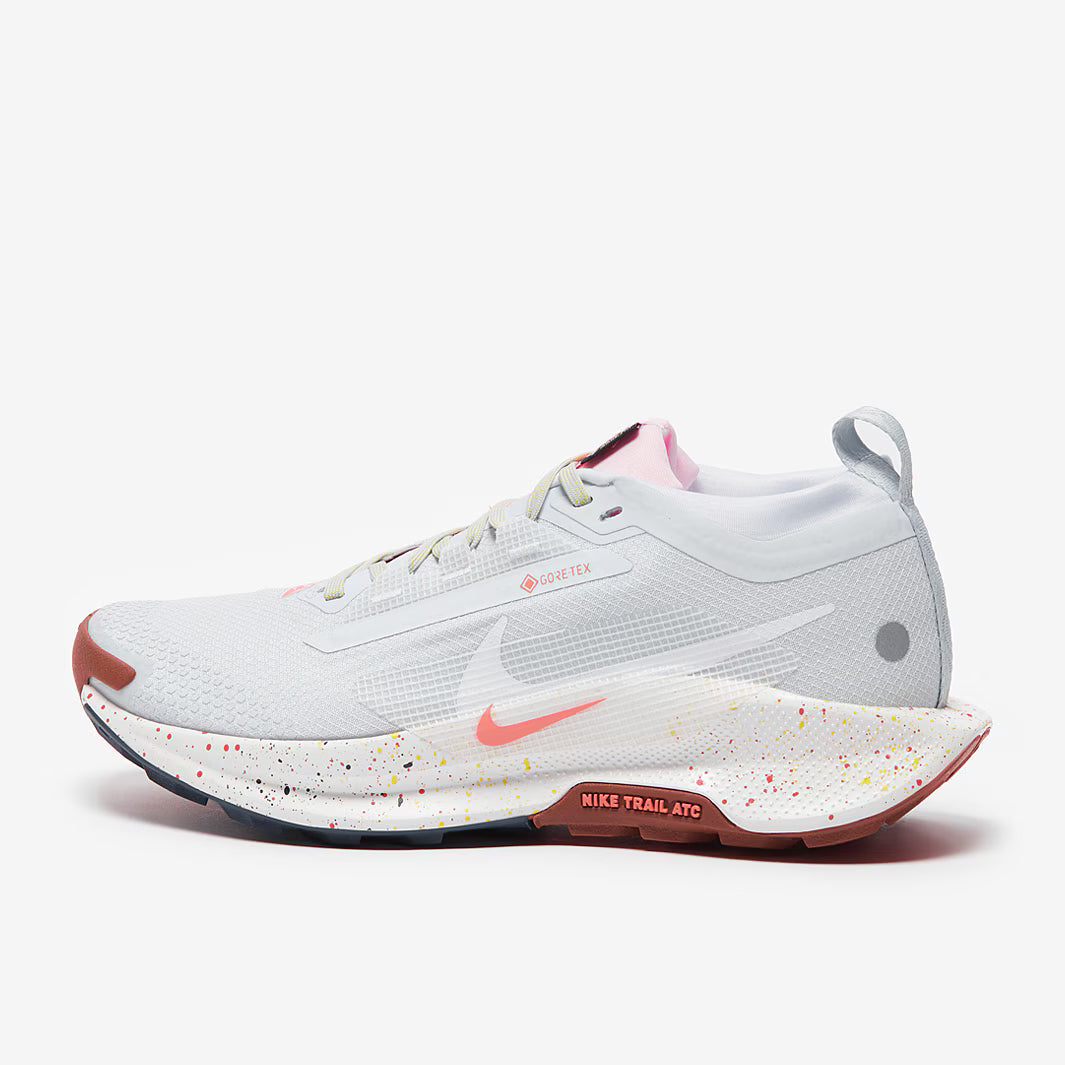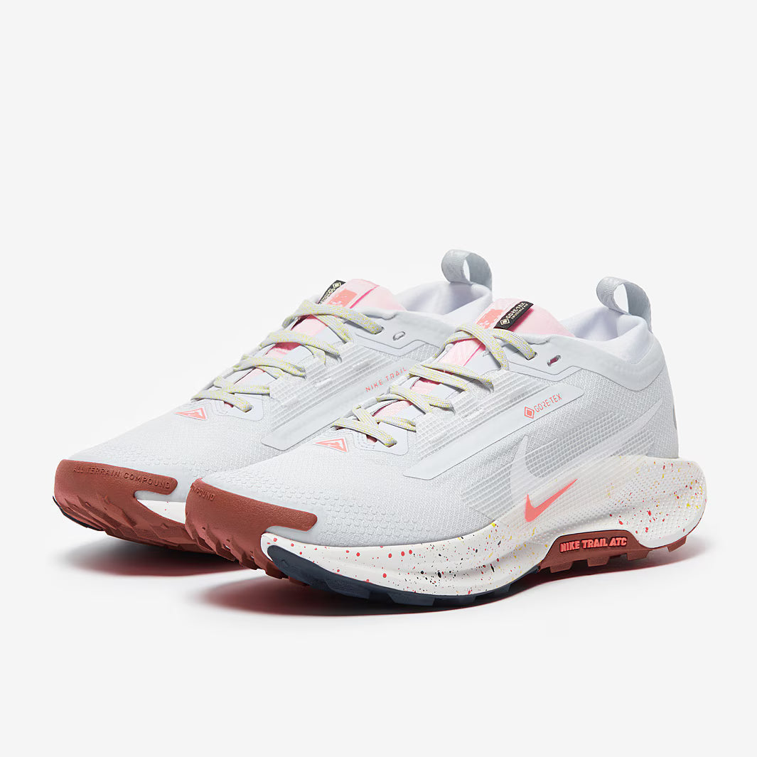 The Nike Women’s ReactX Pegasus Trail 5 GORE-TEX uses a fully water-proof GORE-TEX upper to help keep you dry no matter the conditions.ReactX has a been developed over a 5-year period and provides a 43% reduction in the carbon footprint of a pair of midsoles, and increases energy return by 13%, giving you improved performance for the planet, and for your runs.The outsole uses a generative traction pattern for excellent grip and runs up over the front of the foot to improve durability.